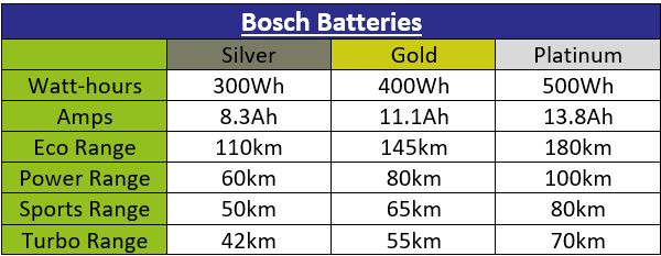 Battery information provided is a guide as ranges will be subject to differences in terrain, bicycle types, rider weight and weather