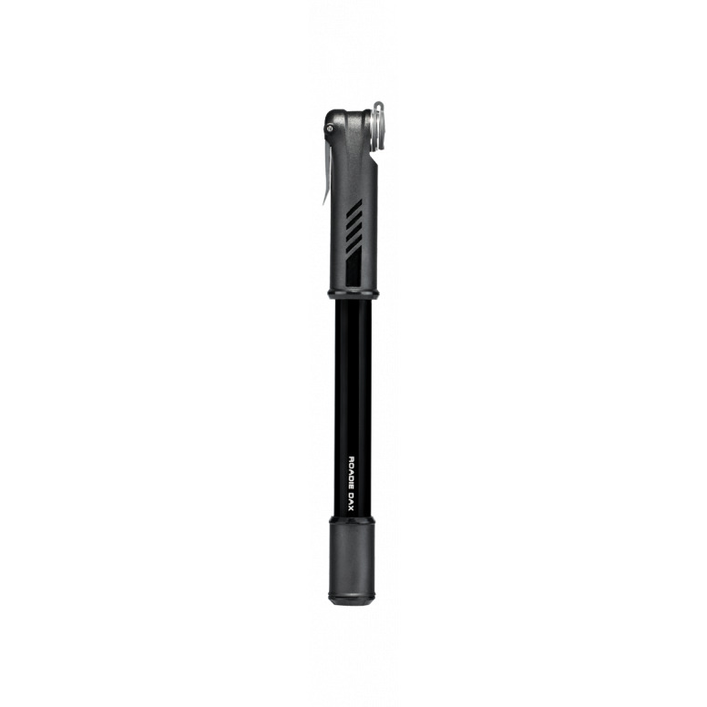 The Roadie DAX inflates high pressure road tyres fast. Dual-Action (DA) doubles volume by inflating on both the push and pull strokes. Integrated dust cap keeps pump head clean and thumb lock lever insures air-tight seal.