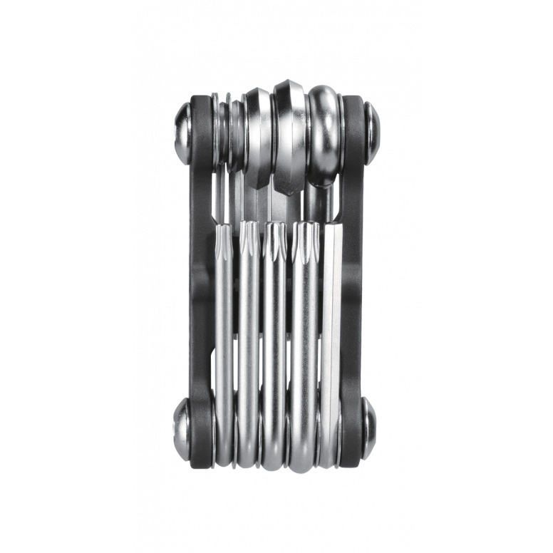 | Description | One piece, lightweight and compact folding tool. 10 pro quality hardened steel tools fold into an extruded aluminium body ideal for any cyclist. Includes: