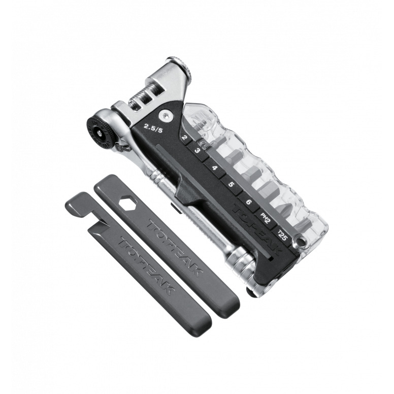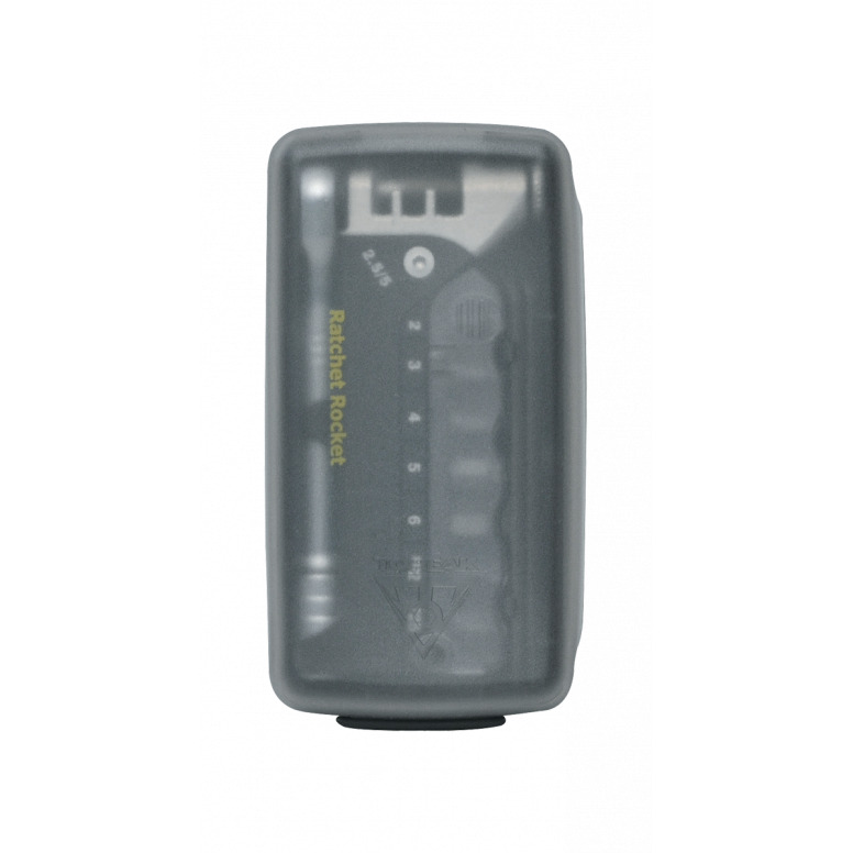 Mini-tool convenience with the speed of a reversing ratchet. The Ratchet Rocket features a fine tooth ratchet mechanism with reverse lever & thumb wheel for quick rotation and control in tight spots. Nine hardened steel bits plus a hollow bit for snapping Shimano chain pins.