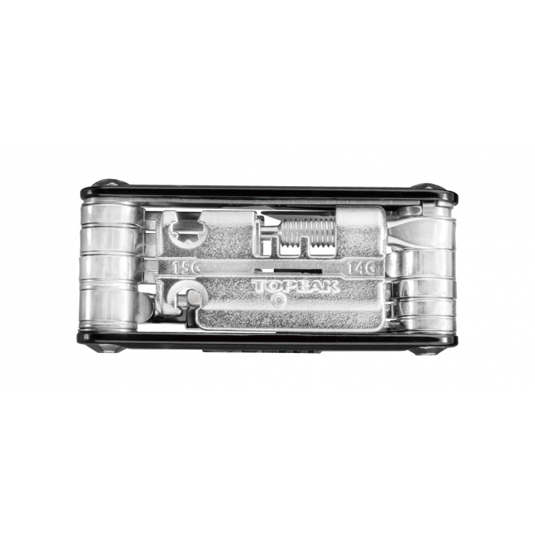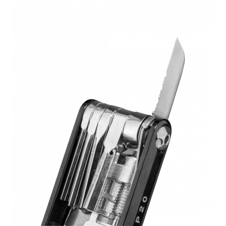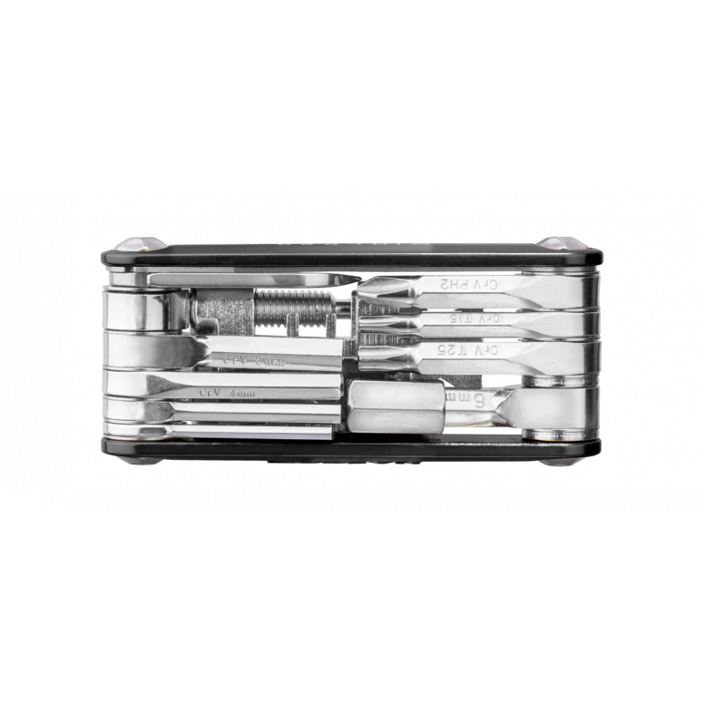 | Description | 20 function pro-quality, precision mini tool with sleek forged alloy body. Integrated easy-to-use chain tool combined with a unique power link tool which folds away for a streamlined profile. Perfect for long road rides or endurance mountain biking. Includes a neoprene bag for protection. |