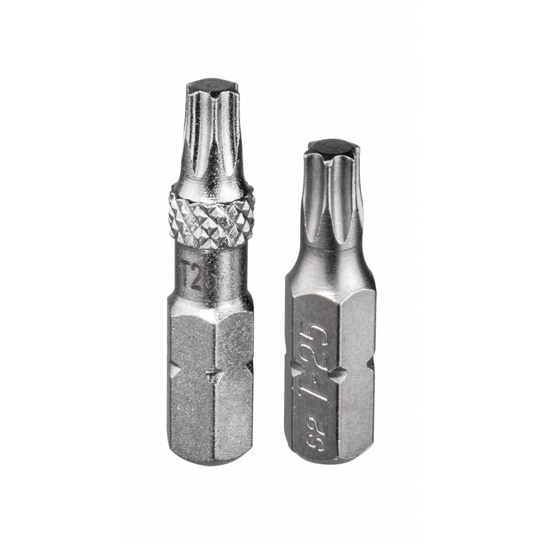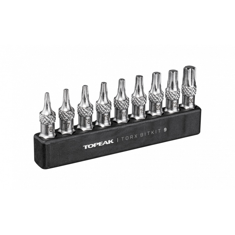 | Description | A complete 9 piece Torx bit set for road and mountain bike repair and maintenance. Designed to work with all Topeak ratchets and torque wrenches as well as other brand ratchets and bit drivers. Generous 30mm bit length makes it easy to reach tough bolt locations and an added grip-ridge prevents fumbling when changing bits or removing bits from the organizer. Bits included: T6 / T7 / T8 / T9 / T10 / T15 / T20 / T25 / T30 Torx® bits |