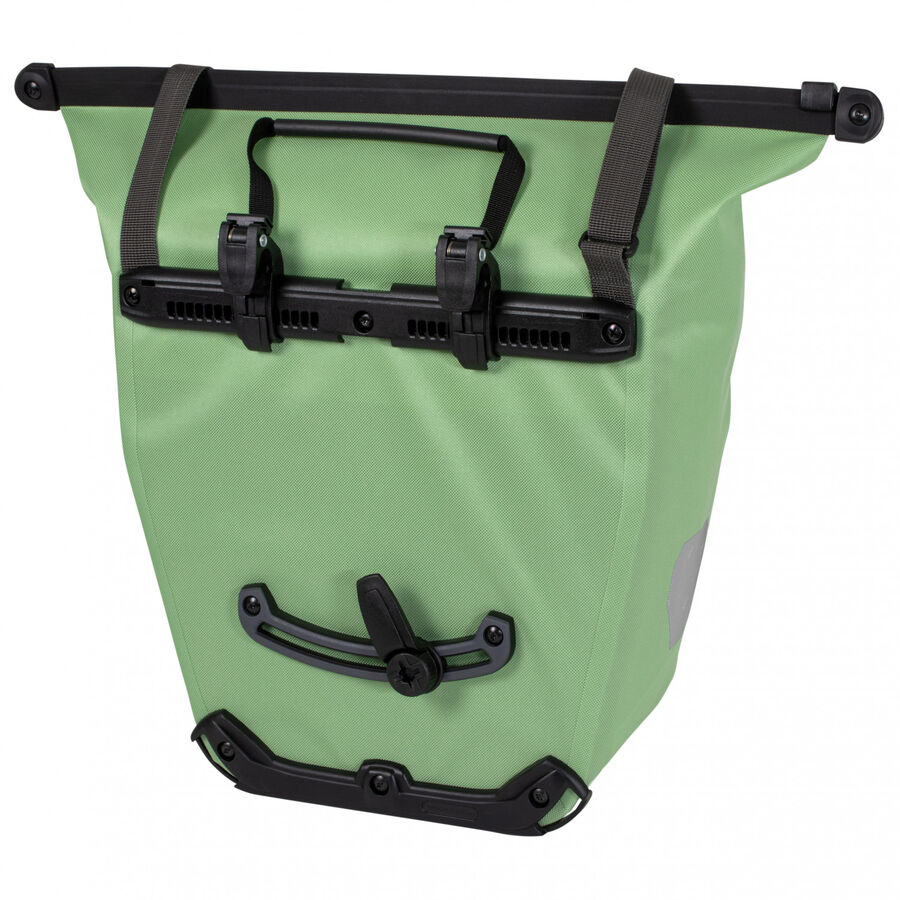 Description Your spacious one-click shopping bag: the Bike-Shopper with QL2.1 system can be quickly attached to and removed from your rack. The flexible market and shopping bag remains stable - also on bumpy roads. The adjustable carrying straps allow it to be carried comfortably on your shoulder (adjusted by push buttons) and will not be in the way during biking. A waterproof Quick-Seal closure provides protection from rain.