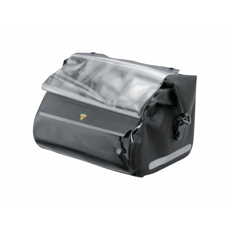 | Description | A full-featured handlebar bag using DryBag technology to keep the contents dry. A tough waterproof material is sonically welded and seam sealed roll top closure with waterproof zippers also keep the elements at bay. Rigid EVA foam and divided main compartment provide shape and insulation against road shock and vibration. Quick-release clamp, carrying handle and shoulder strap for off-bike use.