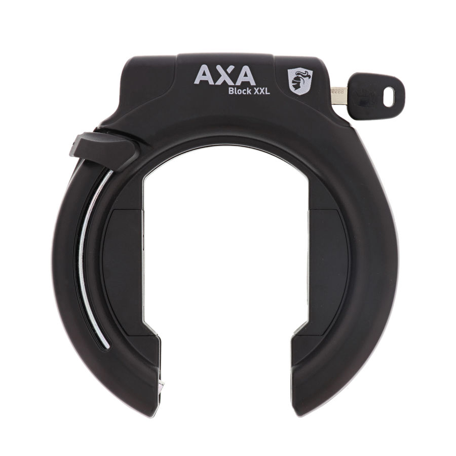 | Description | The AXA Block XXL is the newest frame lock from AXA and has an extra wide opening suitable for most E-Bikes as well as standard bikes with larger tyres. Use the ULC plug in chain to lock your bike to a fixed object for added security. Offering optimal safety with its anti drilling cylinder and hardened steel bracket. It has an ergonomic push button for easy operation and is supplied with two robust keys. Fit either to the braze ons on the bike or order the Flex mounting kit to fit a variety of frames. An MTB mounting kit is also available. This lock offers optimal safety with its anti drilling cylinder and hardened steel bracket. It has an ergonomic push button for easy operation and is supplied with two robust folding keys. For misplaced keys use the international online key service - order your key at axabikesecurity.com and your replacement key will be delivered within a few days. You will need to take note of your key number. Compatible with the ULC plug in chain Key Features: Safety level 12 Maximum security with plug in option Supplied with 2 keys Key replacement service available Child safety Hardened steel bracket and lock housing Anti drilling plate in cylinder Extra wide opening - 70 mm Black |