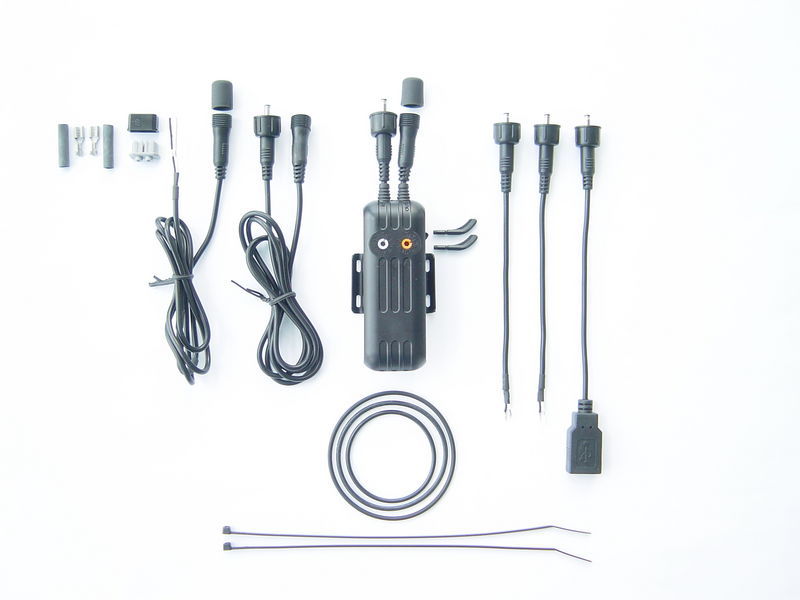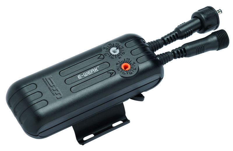 | Description | Busch & Muller have designed the E-WERK to allow you to charge mobile electronic devices such as mobile phones, GPS devices, MP3 players and other electronic devices whilst riding. The E-WERK connects to a hub dynamo and makes the generated energy available to charge and or power the mobile device. The voltage and current can be adjusted in small increments to suit the mobile device being charged. Maximum voltage is 13.3V and current upto 1.5A. The E-WERK begins to charge a device at about 8 km/h. At about 15 km/h the E-WERK is charging as quickly as quickly as a standard mains connected charger. It can be fed with up to 50 V DC so that it can operate with an e-bike or car battery. The E-WERK can be connected to bicycle frames of varying diameters in any suitable position by utilising the runner bands or cables straps For dynamo or battery connection Multiple connection options for USB, Mini USB and Micro USB devices Supplied with 2 free cables for individual connections Supplied with special plugs for SON and Shimano hub dynamos Splash and rainwater proof Measurements: W x : x H: 32 x 88 x 23mm Weight: approx. 53 g (without accessories) |
