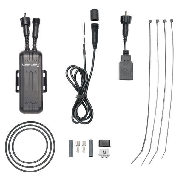 | Description | Busch & Muller have designed the USB-WERK with an integrated cache battery. It supplies 5V and up to 1A current. The battery ensures a constant voltage supply during slow riding and/or stops. For this reason the USB-Werk is a perfect fit for charging/powering USB devices such as mobile phones, GPS, MP3 player. The unit is supplied with cable and USB socket. |