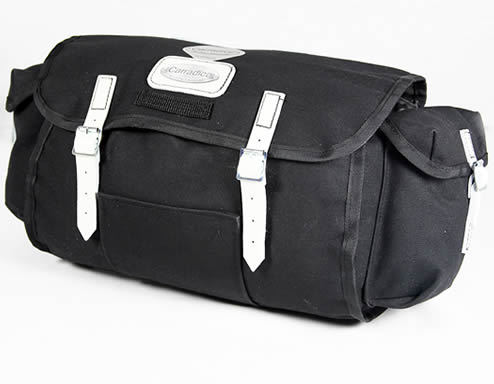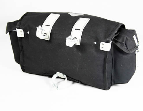 | Description | Weight (grams): 610 Capacity: 11 litres Dimensions: 30cm wide x 18cm high x 15cm deep Fixing system: 3 leather straps supplied No of Pockets: 2 side pockets Materials: Cotton Duck material info Other features: In response to the increasing demand for a "Junior" sized saddlebag with the added versatility of side pockets, the Pendle saddlebag fits the bill. Ideal for day rides Drawcord top under lid |