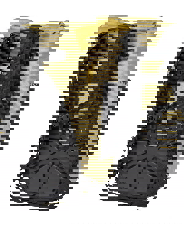 Padded carrying system with chest and waist strap can be stowed away in the zippered front pocket (not waterproof!)