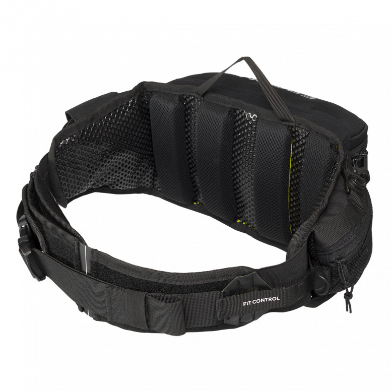 Perfect fit, maximum wearing comfort, unique adjustment mechanism: Ergon's first Hip Pack for Enduro, All-Mountain and Gravel is based on the experience of many years of backpack ergonomics. Conventional hip pockets tend to slip due to the missing back part, especially in technical terrain. Not so with Ergon: The wide, slip-resistant hip belt and the unique compression system guarantee a stable fit. Particularly innovative: The bag contents can be compactly compressed with just one hand via a screw cap. Important things such as tools, bars, hoses, smartphones or even a drinking bladder are safely stowed away and can hardly be felt.