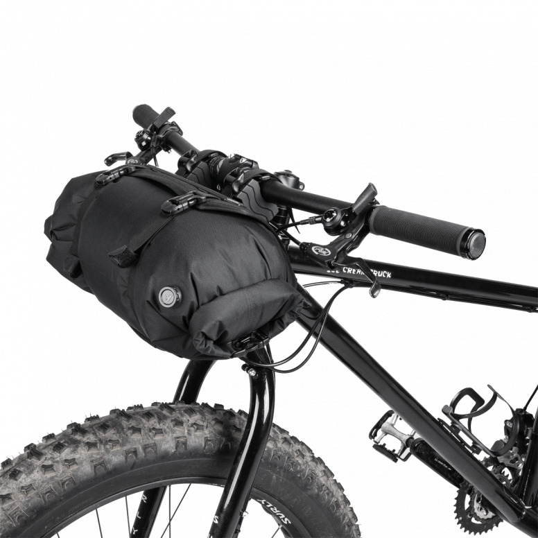 | Description | Pack all the gear you need and enjoy the freedom of bikepacking. FrontLoader is perfect for carrying light yet bulky items like sleeping bags, camping gear and spare clothing. Featuring a tough outer support harness and constructed of durable abrasion and water resistant materials, it's easily installed or removed with two straps, special spacer mounts and quick release buckles. A backside head tube strap attachment increases load stability. A 12 litre removable waterproof drybag keeps contents completely protected from wet weather and splashes while a built-in air release button purges unwanted air from the bag to effectively compress its contents. |