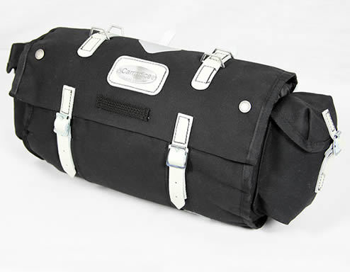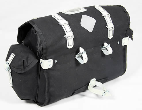 Fixing system: Attaches to saddle bag loops, saddlebag quick release or clamp via leather straps and buckles