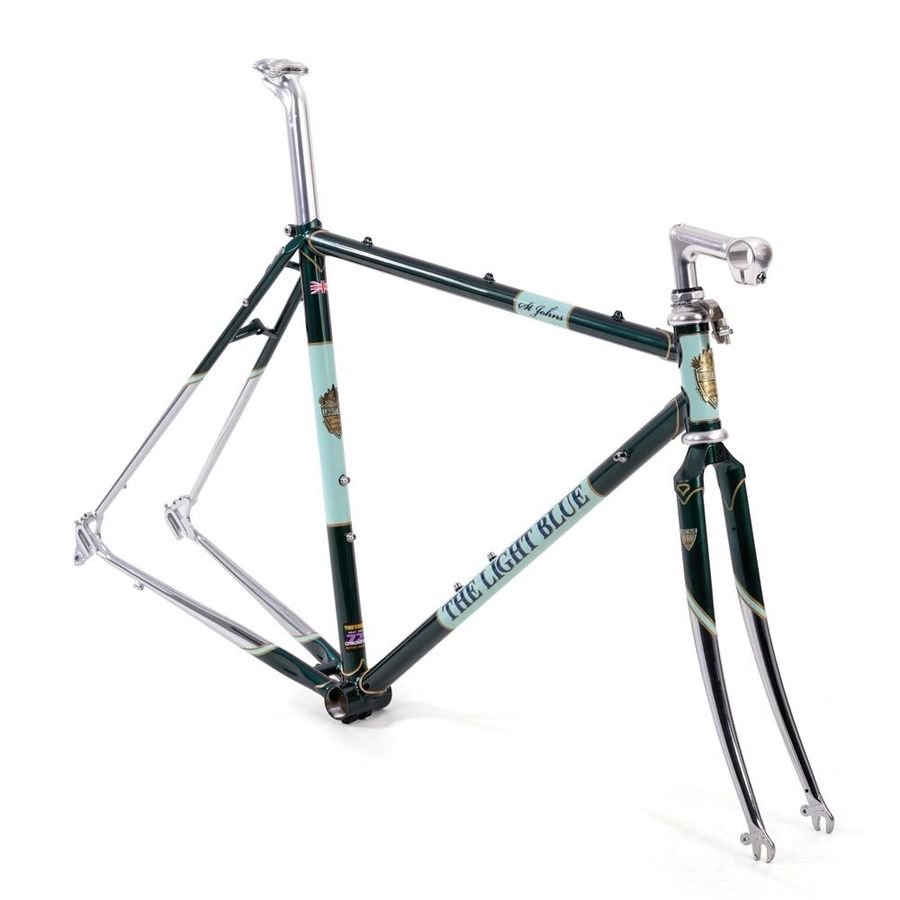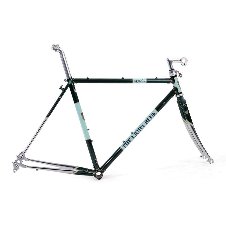 | Description | Retro styled light touring frame made with mudguard eyes. Made from modern, Reynolds 725 tubing and designed for use with centre pull brake calipers. The brazed lugged frame provides timeless elegance and robust construction. Traditional geometry and ample clearance for up to 700x29c tyres (or 25c with mudguards) the St Johns is lightweight and comfortable. Forged, stainless steel, horizontal dropouts, braze on down tube gear lever bosses and a semi sloping fork crown, matched with an elegant high gloss paint and half chrome finish complete the classic look. For Sunday morning rides, sportives, commuting, light touring/Audax the St Johns is the club cyclists new, best old friend. |