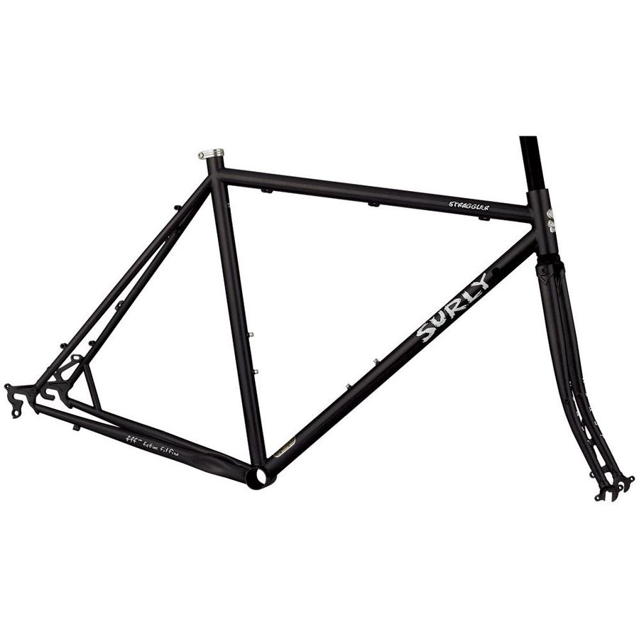 | Description | We think by now, most of you get what Straggler is. It's a Cross Check with disc brakes instead of rim brakes. We also think you get why that's good. The Cross Check is a madly versatile bike that can be used for most types of riding and riding surfaces. It can be set up as a hauler or a mauler and so can Straggler. Better still is that you now have the option of 650b wheel size. 650b wheels were popular for a long time many years ago on 'Constructeur' style bicycles and we all know how real shit was back in the day.... 650b wheels strike a nice balance between the benefits of both 26" and 700c sizes. The smaller wheel allows smaller riders to fit well on smaller frames, produces a stronger wheel, makes fitting big ass tires easier and are more agile than their larger counterparts. Straggler has disc caliper mounts instead of rim brake studs. It'll accept rotors up to 160mm. The rear dropouts are unique, too. They're a partially closed horizontal design that accommodates singlespeed or geared drivetrains. They feature stop screws that thread in from the rear to further secure the wheel and to position the rear wheel for optimal shifting, plus a forward-mounted stop screw on the drive side to keep the wheel from slipping forward under the force of your gargantuan legs. The rear dropouts are spaced 135mm instead of 132.5mm like the Cross-Check simply because there are far more options for disc hubs in this spacing. Straggler shares all of the Cross-Check's braze-ons for fenders, racks and bottle cages. The Straggler's geometry is slightly different, with angles and tube lengths very close but not identical to the Cross-Check, but like the Cross-Check it's ready to take you just about anywhere. It's a day tripper and a weekender. It's a 'rough road' road bike. It's a cyclocross bike with no pretense about racing. It's a utilitarian townie. It's a light-duty touring bike. It's an all-weather commuter. And when you get tired of one set up, you can swap parts around and turn it into something else. Frameset Specification