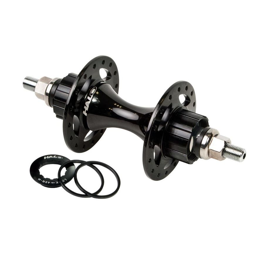 "Halo's HG spline system is so obvious and brilliant that other brands must be kicking themselves for not thinking of it first. It can't slip or thread; it's way easier to fit or swap and will take down to 12t cogs, it's genius". Note: The HG spline must ONLY be used with 7mm wide "fat foot" sprockets such as Halo Fat Foot sprockets or Gusset Double Six sprocket to avoid the cog biting into the alloy splines on the hub. Regular width HG sprockets should NEVER be used. Weights noted for track hubs include tracknuts at 32g |