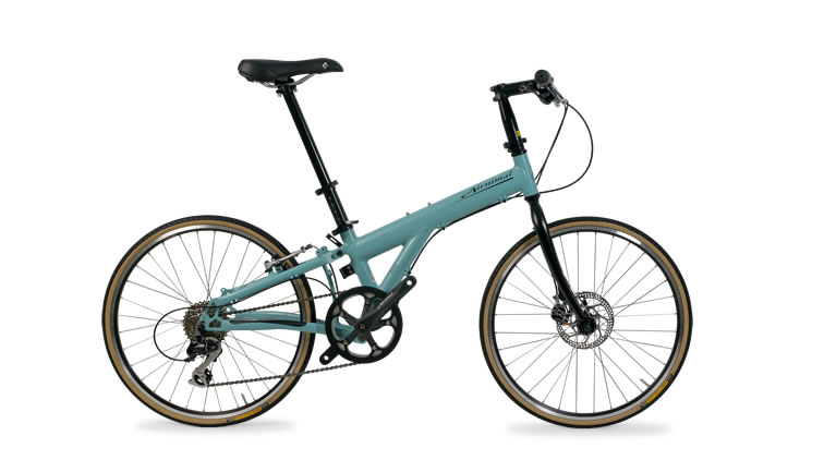 Style Featuring a 9 speed Shimano derailleur gear system, twin discs and, as standard, a superlight 24?/ISO 520 wheelset, the Joey Sport is the classic lightweight folding bike. Unusually, and to add to its versatility, it is also available with a much heavier duty 24?/507 wheelset better suiting it to heavy duty commute cycling and even bike touring, or for taller riders, 26?/ISO 559 wheels and tyres. Fitted with rack and mudguards it’s the ultimate fast commuting bike during the week, then, come the weekend, and it’s ideal for some sport and leisure cycling.