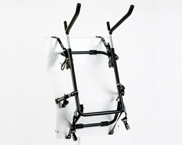 The Strap On Rack has adjustable top arms so that it can fit saloons, hatchbacks, estates, people carriers and other flat backed vehicles and it is also the only rack of its kind which has height adjustable cycle support arms. The length of the cycle support arms can be adjusted, which enables the height at which the cycles are carried to be either raised or lowered.