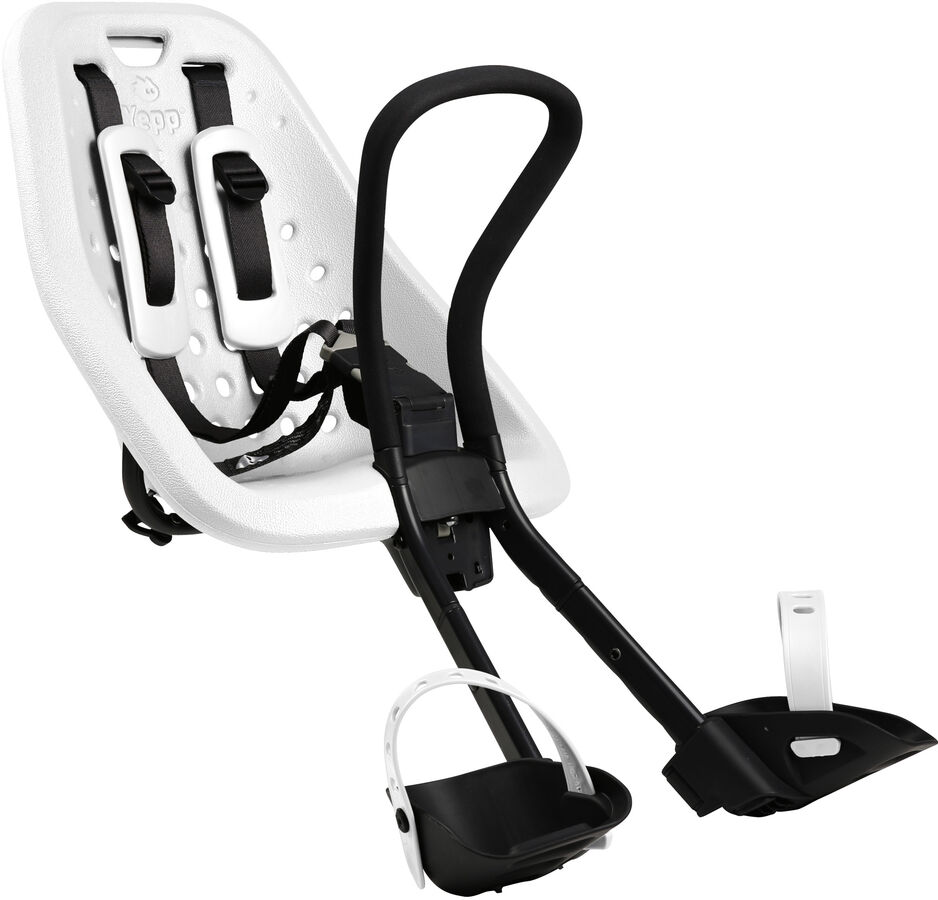 | Description | The number one Dutch child seat brand for the past decade. Front mounted seat, ideal for boosting the confidence of smaller children of for using in tandem with a rear mounted seat. Fits to quill style stems, for ahead stems please use adaptor THY12020402, requires 42 mm of stack height. Unique shock absorbing construction for excellent comfort without the need for complex suspension systems. Safe, custom fit thanks to the adjustable padded 5-point harness. Your child is quickly and easily secured with the childproof safety buckle. Added visibility thanks to built-in reflector and safety light attachment point. Ensures a perfect fit as your child grows thanks to adjustable foot rests and foot straps. Easy to clean and to keep dry due to the seat?"?Æs water-repellent materials but vented for comfort on hot days. Designed and tested for children from 9 months to 3 years old, up to 15 kg |